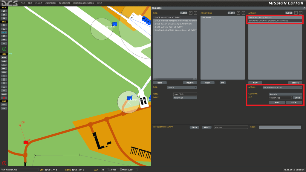 You can use the test-mission.miz mission as a demonstration on how to use the CTLD script in a DCS mission.