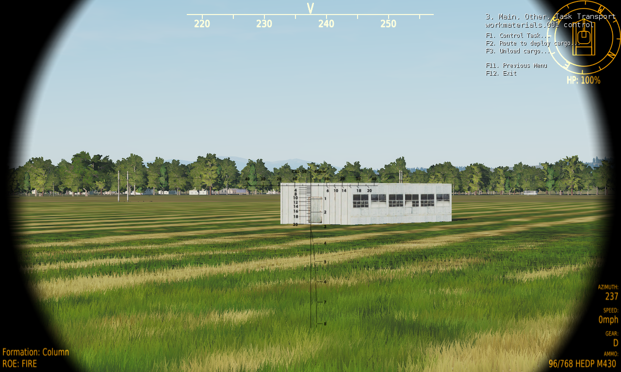 Boarding: Moveable cargo (like infantry or vehicles), can be boarded, that means, the cargo will move towards your carrier to board. However, it can only execute the boarding actions if it is within the foreseen Reporting Range. Therefore, it is important that you steer your Carrier within the Reporting Range around the cargo, so that boarding actions can be executed on the cargo. The reporting range is set by the mission designer. Fortunately, the cargo is reporting to you when it is within reporting range.