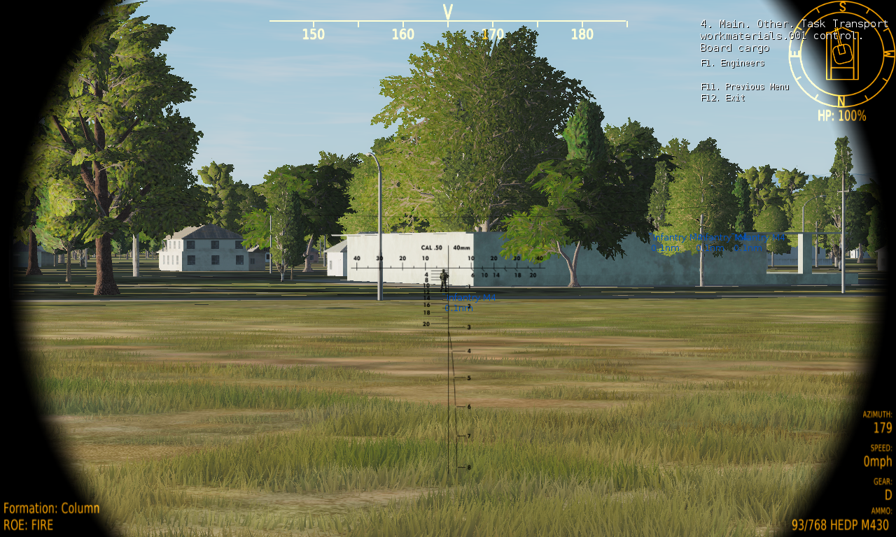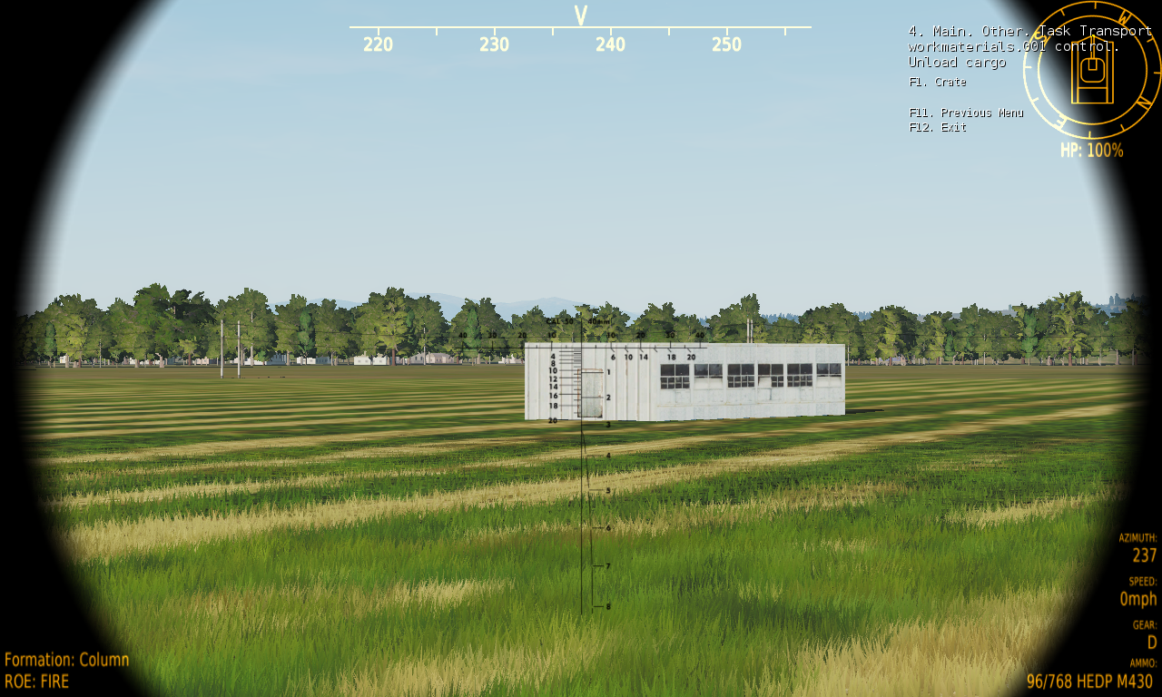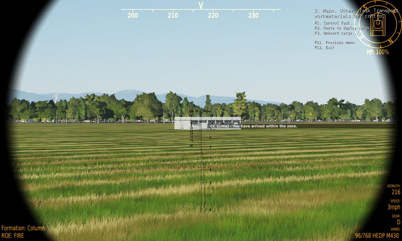 Boarding: Moveable cargo (like infantry or vehicles), can be boarded, that means, the cargo will move towards your carrier to board. However, it can only execute the boarding actions if it is within the foreseen Reporting Range. Therefore, it is important that you steer your Carrier within the Reporting Range around the cargo, so that boarding actions can be executed on the cargo. The reporting range is set by the mission designer. Fortunately, the cargo is reporting to you when it is within reporting range.