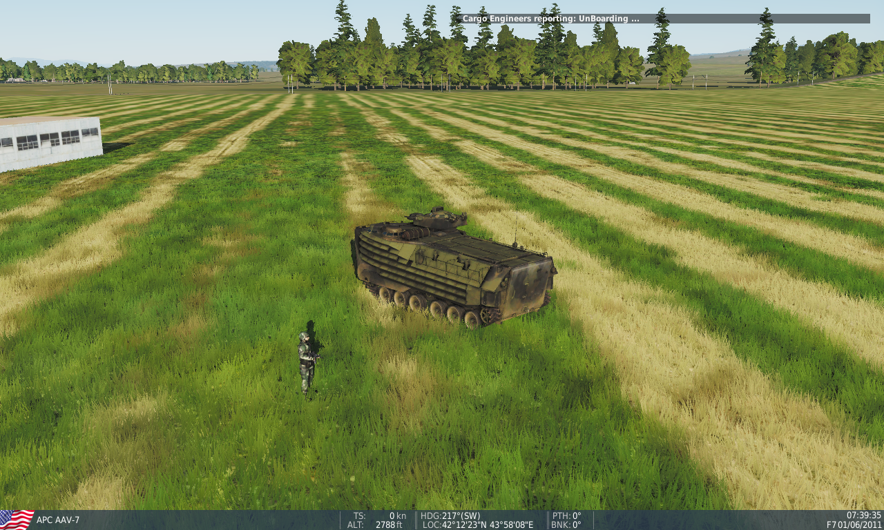Boarding: Moveable cargo (like infantry or vehicles), can be boarded, that means, the cargo will move towards your carrier to board. However, it can only execute the boarding actions if it is within the foreseen Reporting Range. Therefore, it is important that you steer your Carrier within the Reporting Range around the cargo, so that boarding actions can be executed on the cargo. The reporting range is set by the mission designer. Fortunately, the cargo is reporting to you when it is within reporting range.