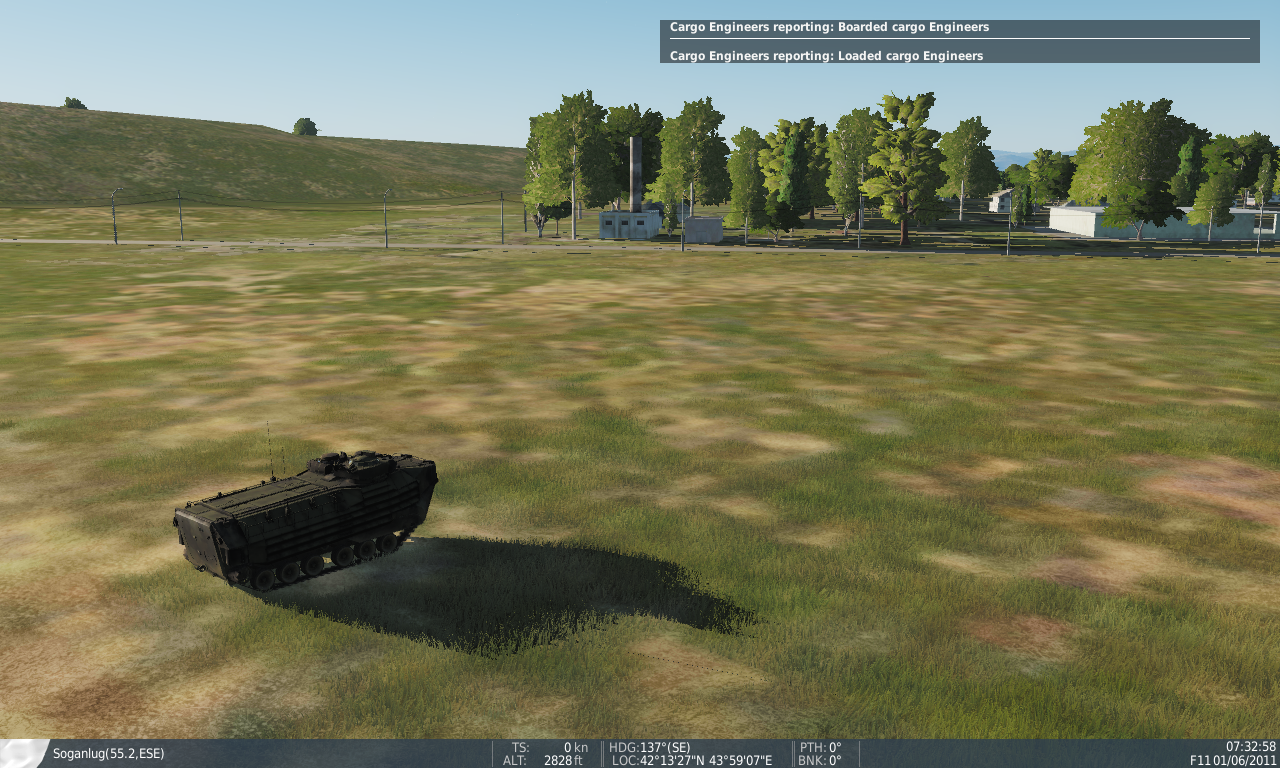 Boarding: Moveable cargo (like infantry or vehicles), can be boarded, that means, the cargo will move towards your carrier to board. However, it can only execute the boarding actions if it is within the foreseen Reporting Range. Therefore, it is important that you steer your Carrier within the Reporting Range around the cargo, so that boarding actions can be executed on the cargo. The reporting range is set by the mission designer. Fortunately, the cargo is reporting to you when it is within reporting range.
